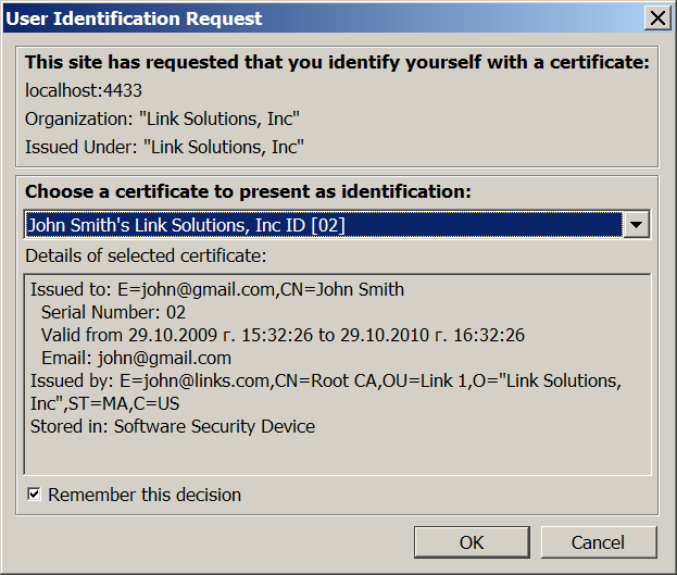 10. Go to https://cname:ssl-port/ods/. The browser will ask for a certificate; select the one generated in the steps above.