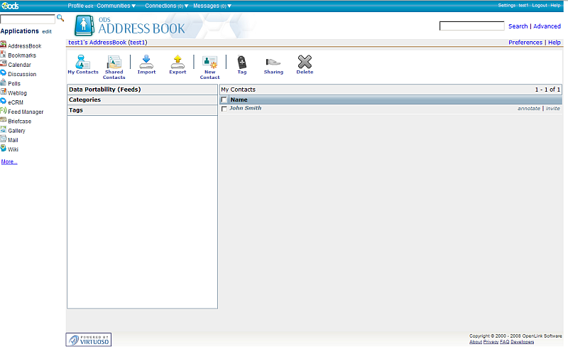 - Now let's check for user test1 what does it have in its Addressbook instance. Log in as user test1