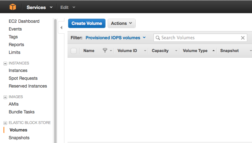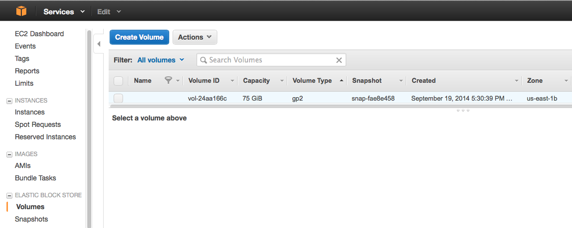 3. Select the "Volumes" link under the "Elastic Block Storage" section