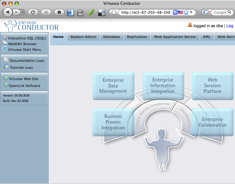 - Load the Virtuoso Conductor administration interface of the running EC2 AMI instance with a URL of the form