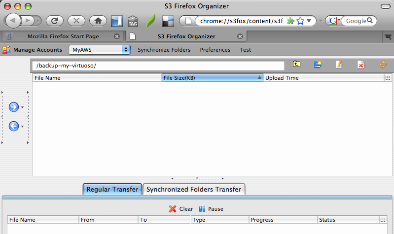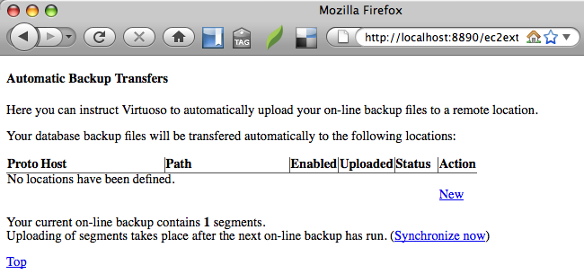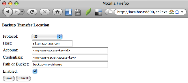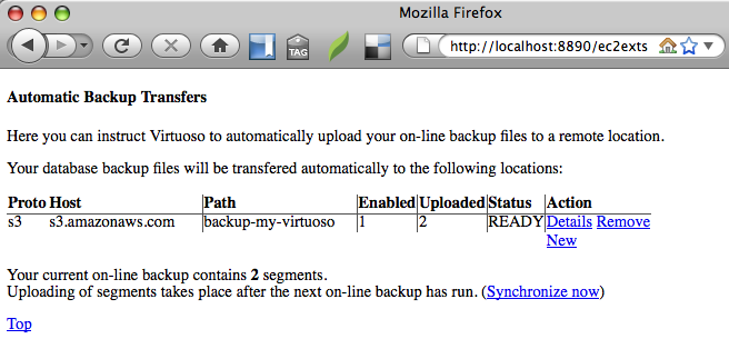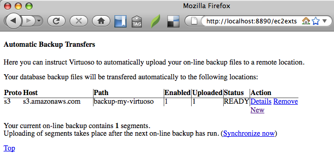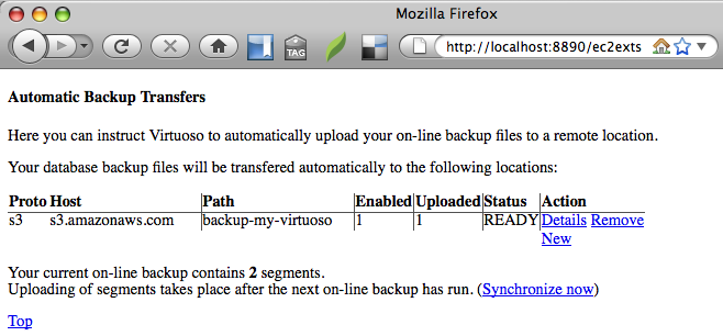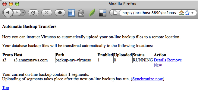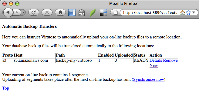 - Going back to the "Automatic Backup Transfer" link of the Virtuoso Extensions for Amazon EC2 UI (