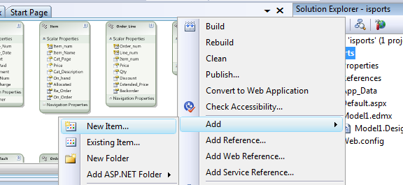 - Right click on the isports project name in the Solution Explorer pane.