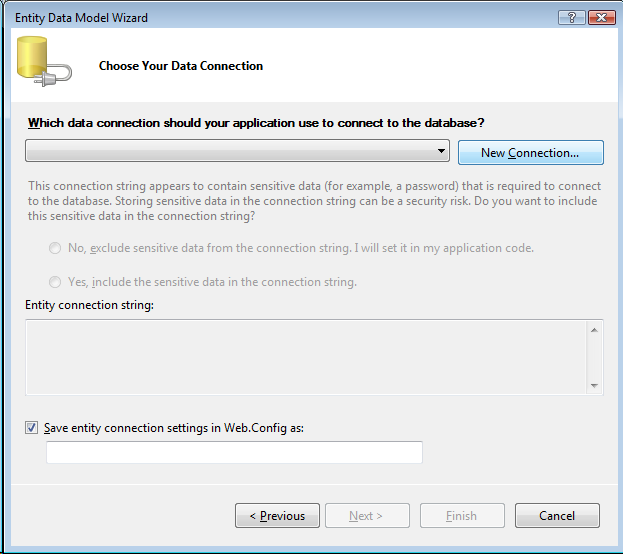 - In the Entity Data Model Wizard dialog Choose your Data Connection page select the New Connection button