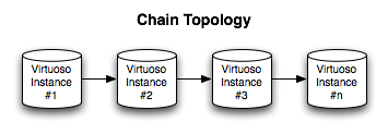 The following How-To walks you through setting up Virtuoso RDF Graph Replication in a Chain Topology.