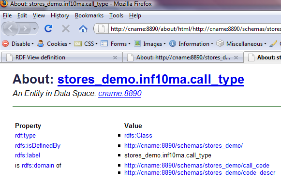 - Click on one of the Instance Data Sample links to view some of the deployed Linked Data views.