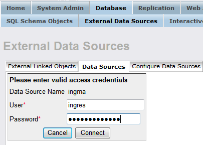 4. Click the Connect button for the Ing10ma Ingres DSN.