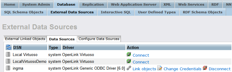 The Link process is now complete enabling the tables to be queried as if part of the Virtuoso Schema.