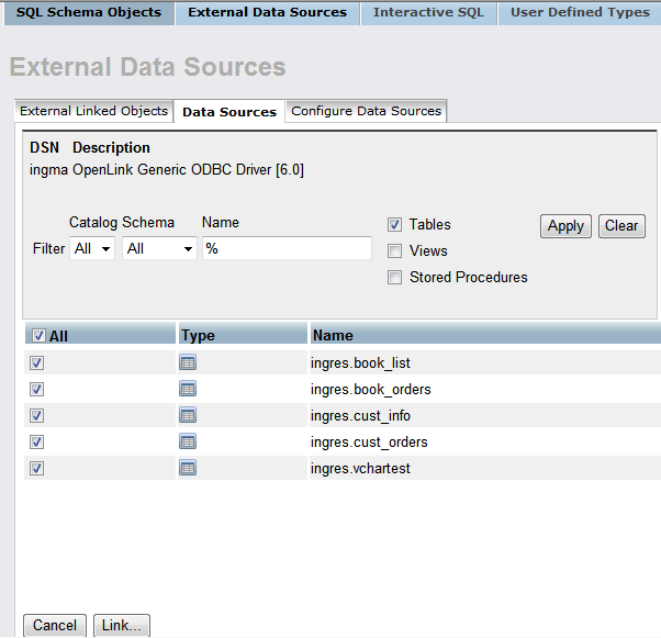 10. On completion of the Link process, the tables will be displayed on the External Linked Objects tab.