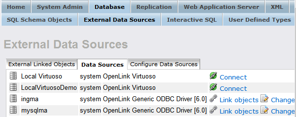 The link process is now complete enabling the tables to be queried as if part of the Virtuoso Schema.