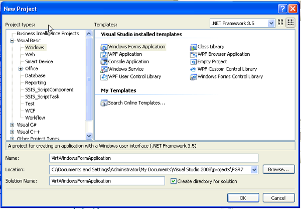 4. Choose a name for the project, for example VirtWindowsFormApplication, and click OK.