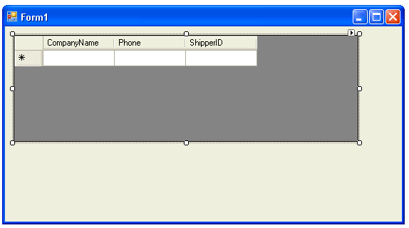 16. From the list of available tables returned for the Northwind database, select the Shippers table to be associated with the DataGridView control.