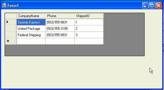 20. The data from the Shippers table will be displayed in the DataGrid.