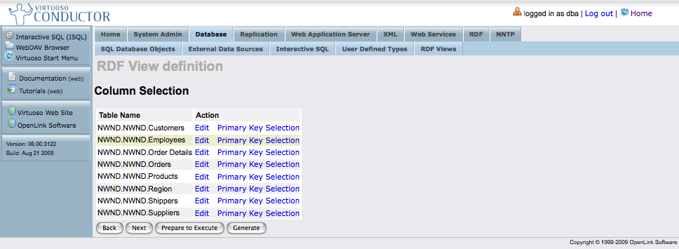 PostgreSQL tables into OpenLink Virtuoso . - Select the Linked Data -> Views tab of the Conductor.