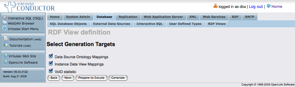 - At this point, the Linked Data View Definition form will let you Select Generation Targets options: