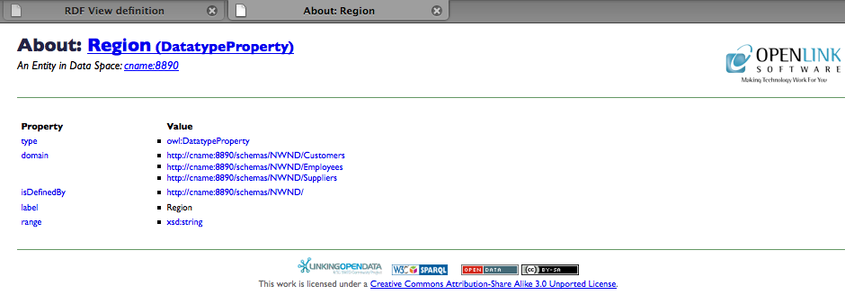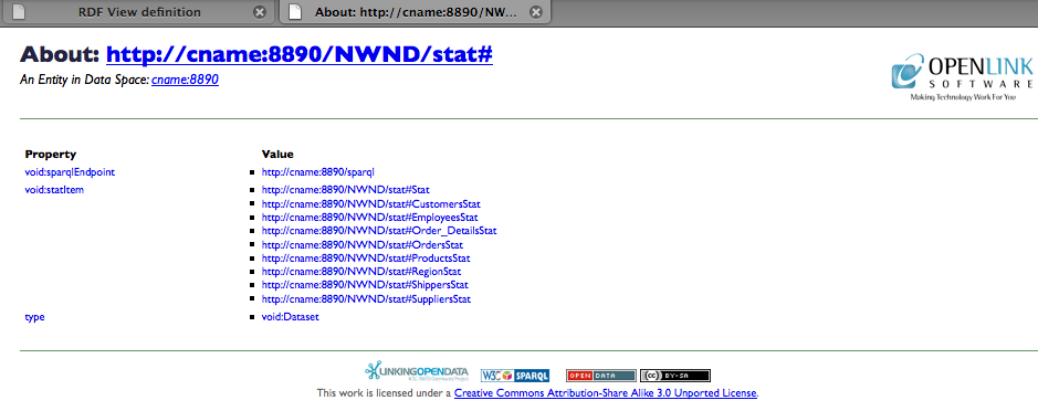 - Click on one of the Instance Data Sample links to view some of the deployed Linked Data views.