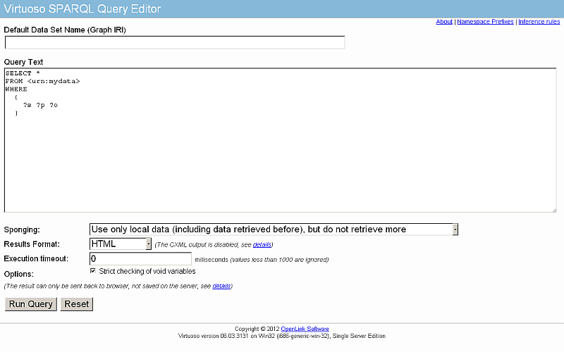 http://localhost:8890/sparqland:- Enter for Default Graph URI: