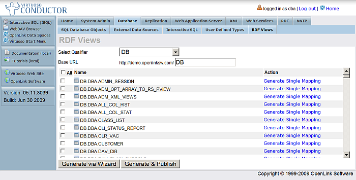 dba(or another user with DBA privileges) - Follow menu path RDF -> Linked Data Views