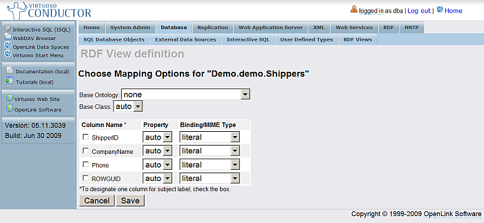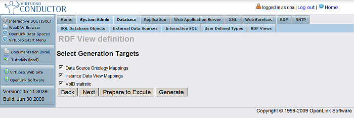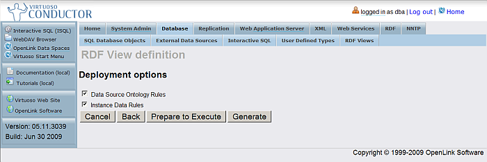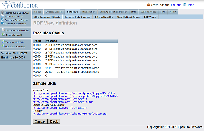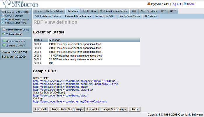 - Apply the generated declarations (instance data and ontology) to your Virtuoso instance