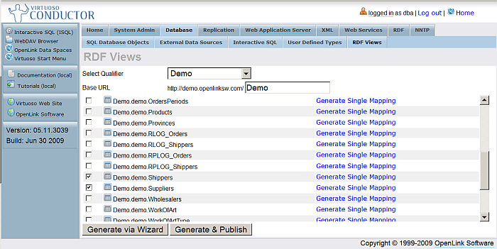 http://<cname>:8890/Demo) - Select the specific Tables containing the data to be published (e.g., Demo.demo.Shippers and Demo.demo.Suppliers)