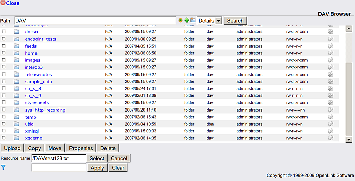 Export as WebDAV resource: exports the selected objects/items as a WebDAV resource: