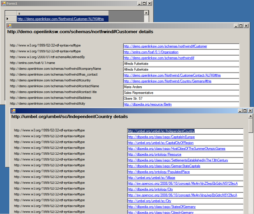 Notice that in displayData method that we look for a http://www.w3.org/1999/02/22-rdf-syntax-ns#type and create a title for the form from it. foreach (DataRow row in table1.Rows)