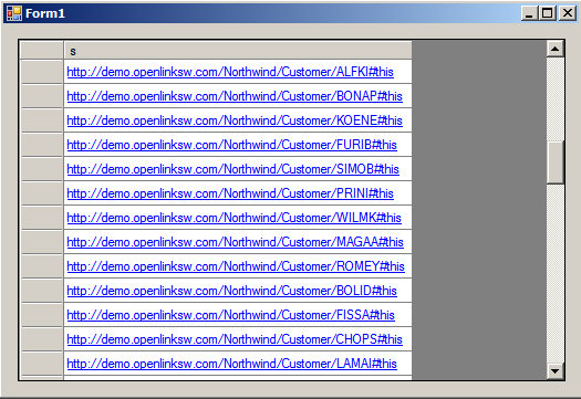 1. Return to the Form Designer and double click on the cell of the DataGridView. This creates the dataGridView1_CellContentClick method in Form1.cs. This is the method that handles clicking on IRI objects in the grid.