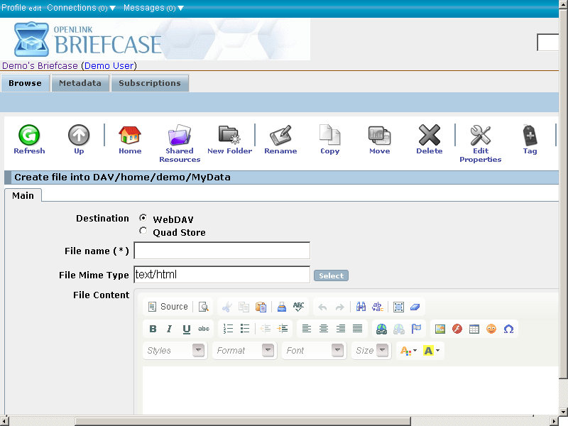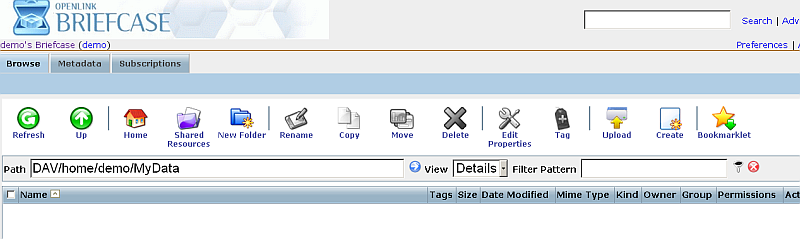 - Go to path "DAV/home/demo/MyData":