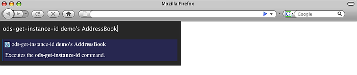 - As result will be shown the instance id. For the "demo's Addressbook" instance this should be 517.