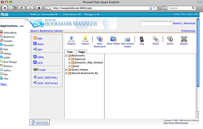 - Now let's get the bookmarks to MyOpenlink ODS Bookmarks instance.