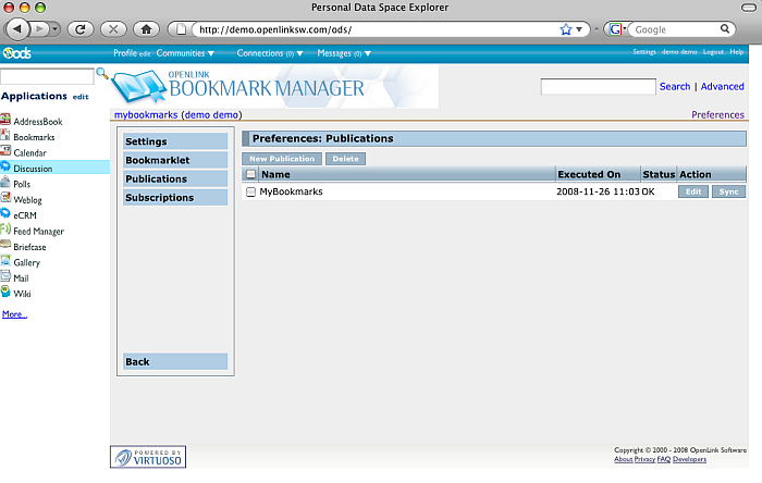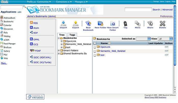 - Using the Bookmarks  UI: - Go to http://demo.openlinksw.com/ods
